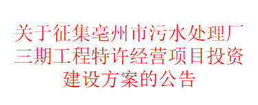 关于征集亳州市污水处理厂三期工程特许经营项目投资建设方案的公告